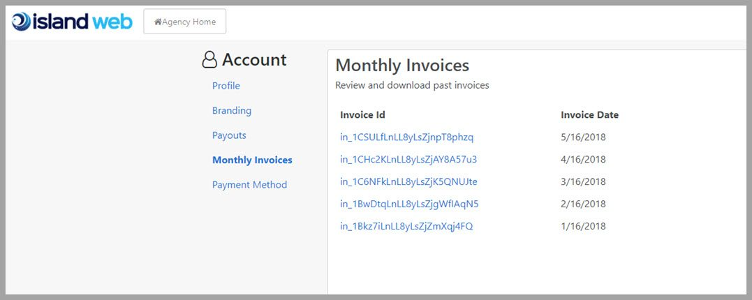 You can review or download your monthly invoices when in the Agency Account level, and by choosing 'Billing Activity' under you Login dropdown.