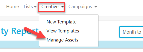 Use the drop down menu found under “Creative” at the top of the home page, selecting Manage Assets.