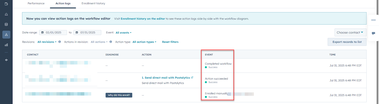 Tracking and Follow-up: The integration then sends delivery and response events (like "Mail Delivered" or "pURL Visited") back to the HubSpot timeline of the associated Contact record. This data can then be used to trigger further actions, like a follow-up email from a sales rep.