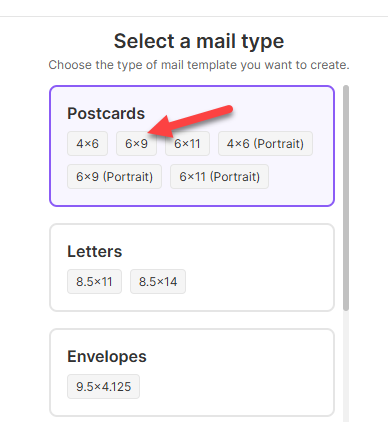 - Select the template mail type by double clicking on the desired template size. Use the scroll bar on the right to view all of the template choices.