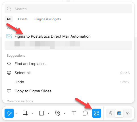 - Click the Plugin menu at the bottom of the screen. Click on “Postalytics Figma Plugin”.