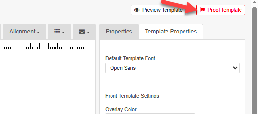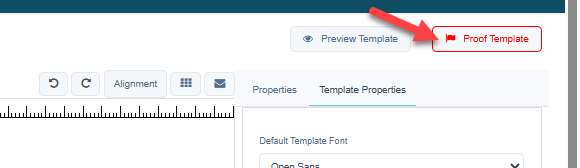 - Once the design has been reviewed and edited as desired, click the red “Proof Template” box in the upper right.