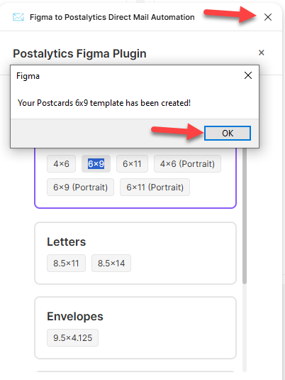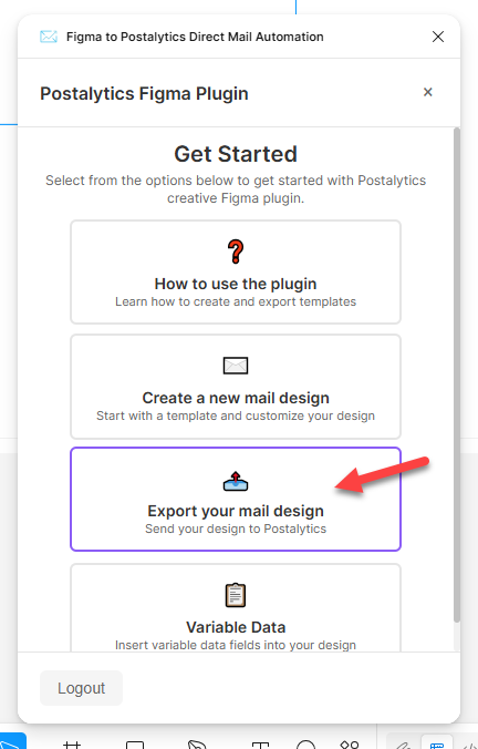 With the creative template finalized, you’re ready to send it to Postalytics - without leaving the Figma Desktop app: