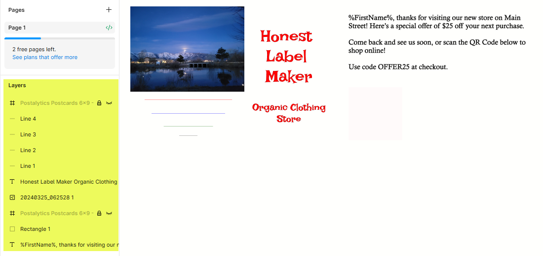 - Creative Freedom, Technical Certainty: Work in the Figma environment you’re comfortable with while maintaining a direct connection to Postalytics’ technical standards.