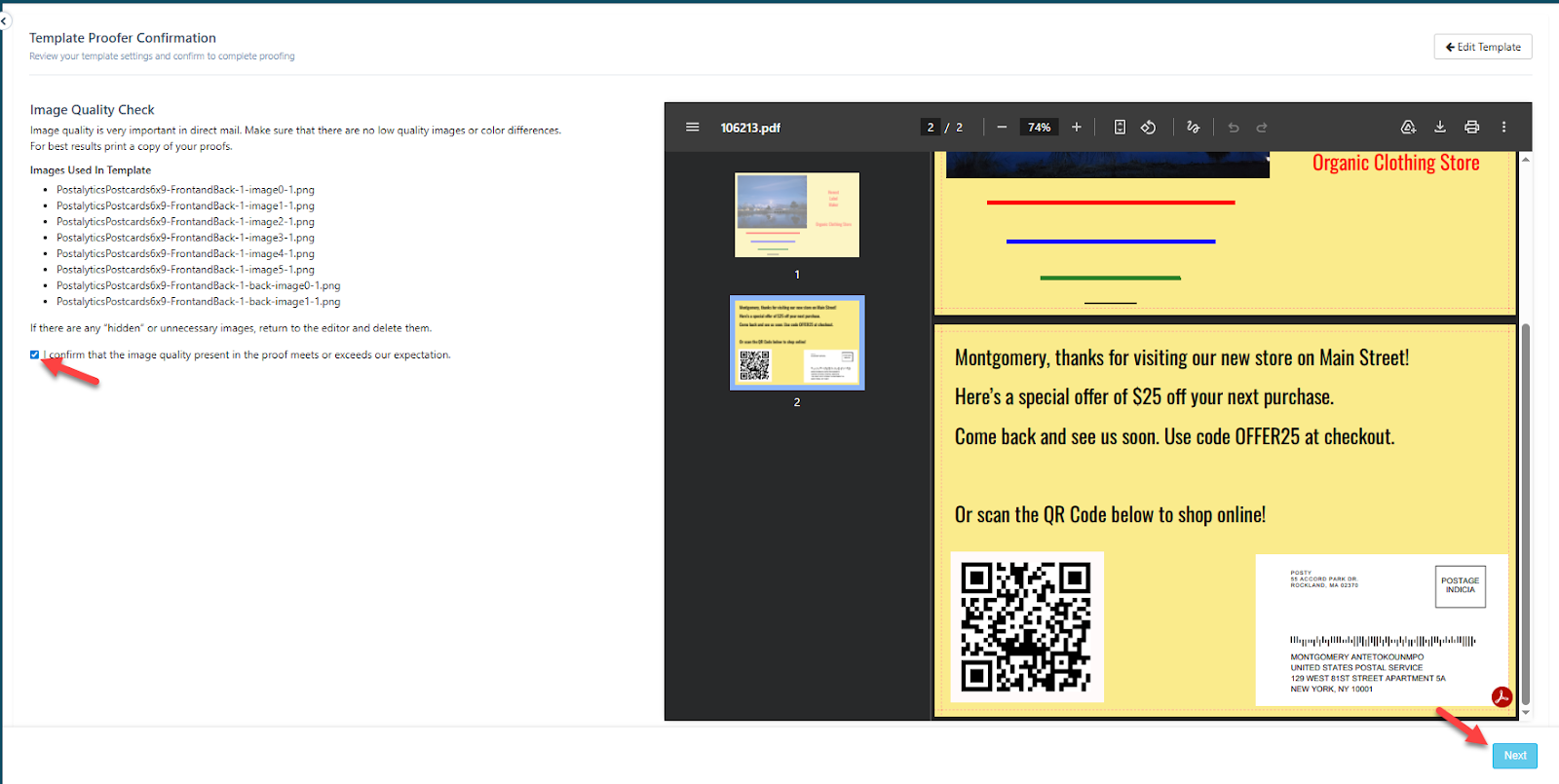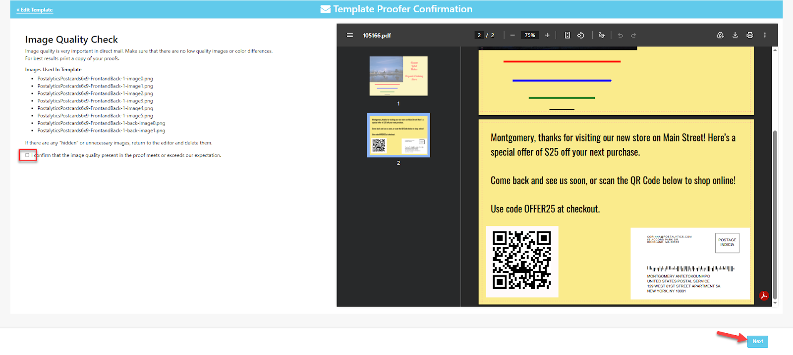 - Proof in Postalytics: Make any final edits and proof the template in Postalytics to use in your campaign.
